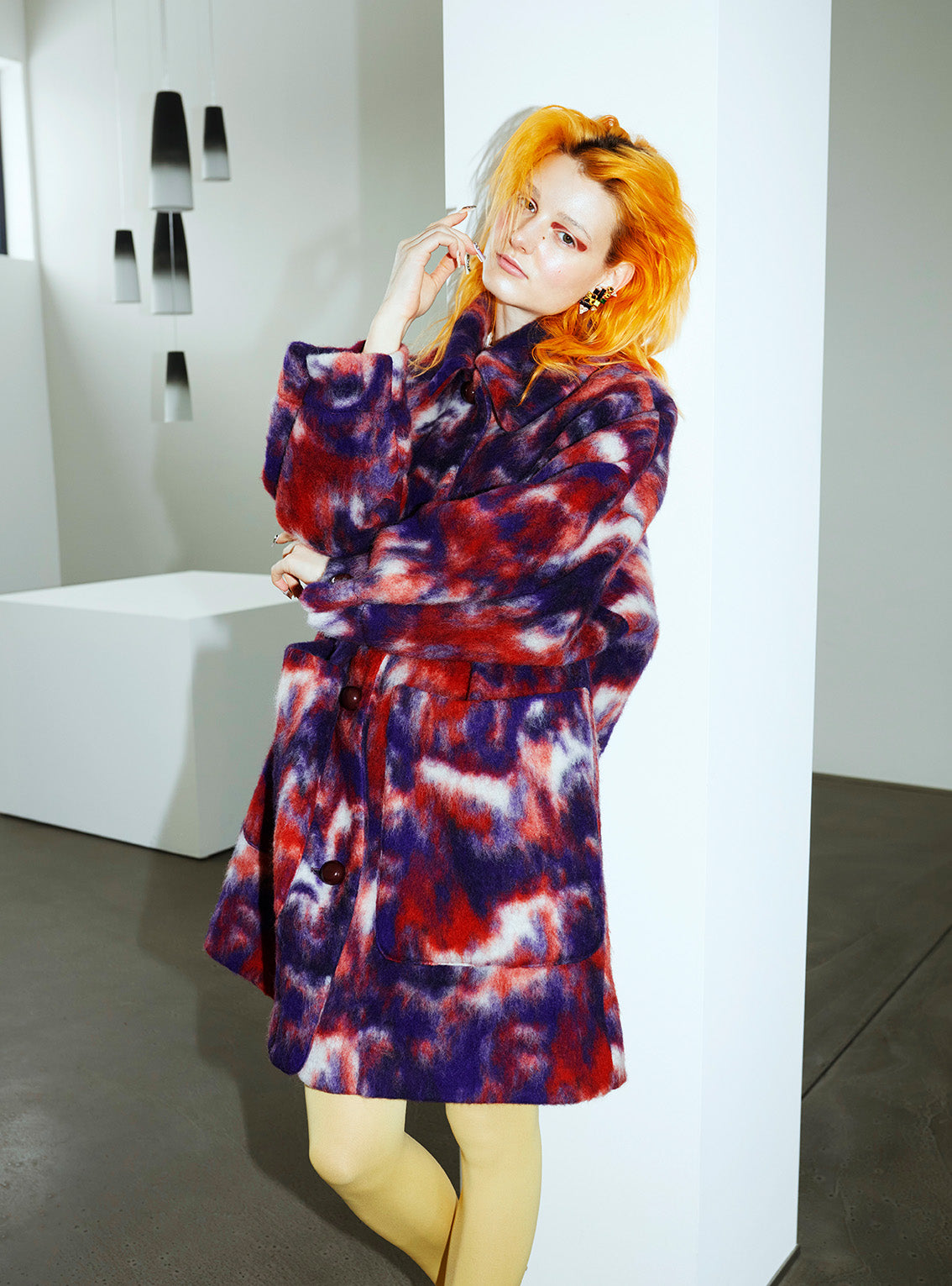 Premium wool-blend coat featuring a soft, brushed finish with a mohair-like texture.