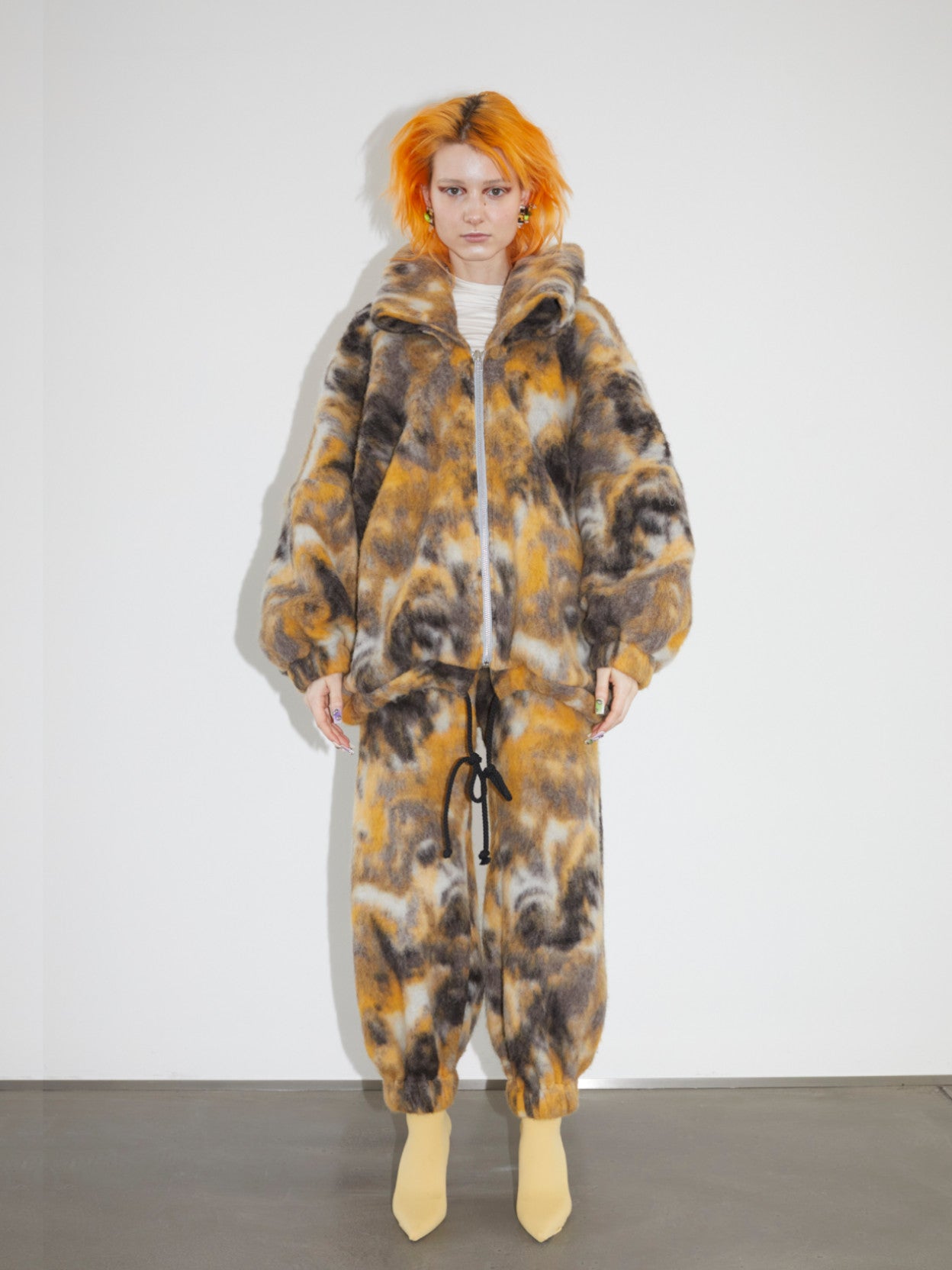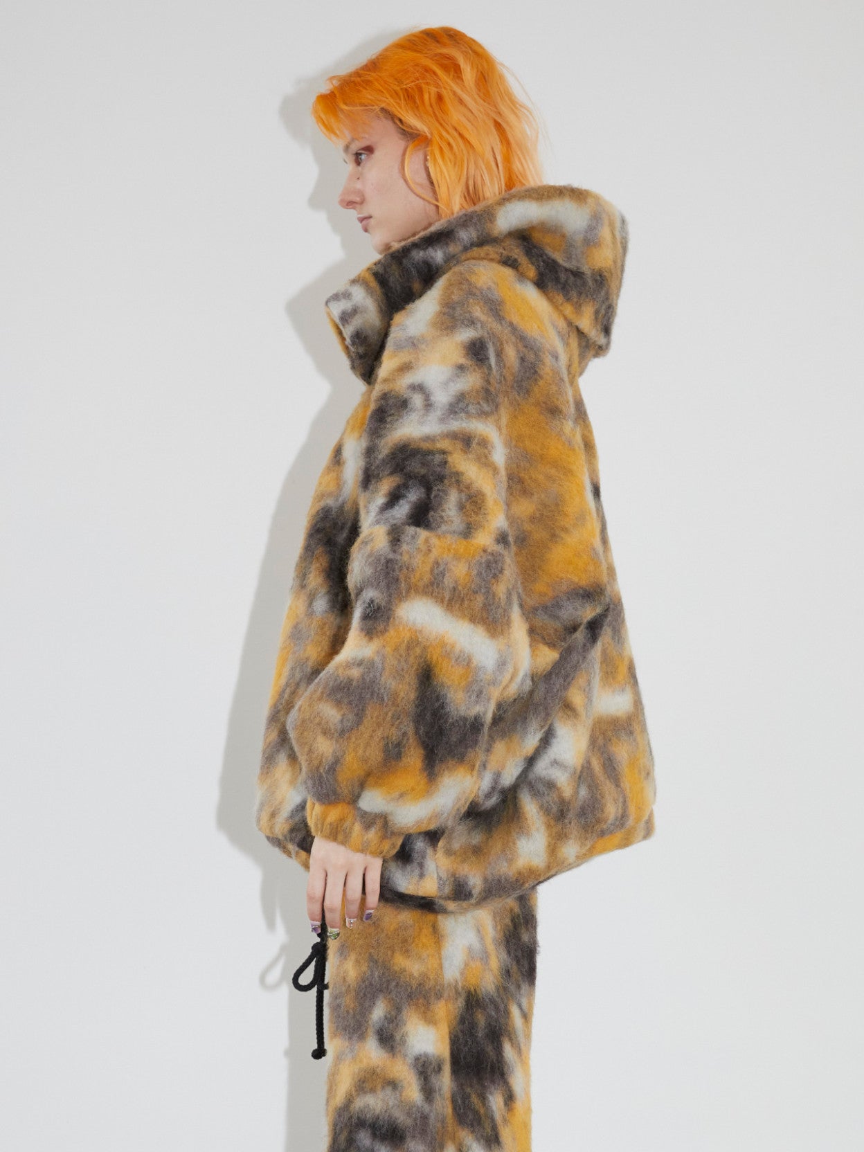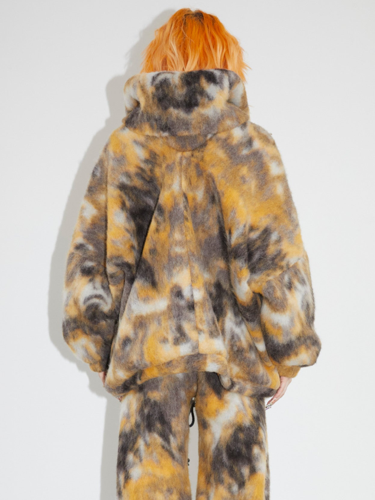 Premium wool-blend jacket featuring a soft, brushed finish with a mohair-like texture.