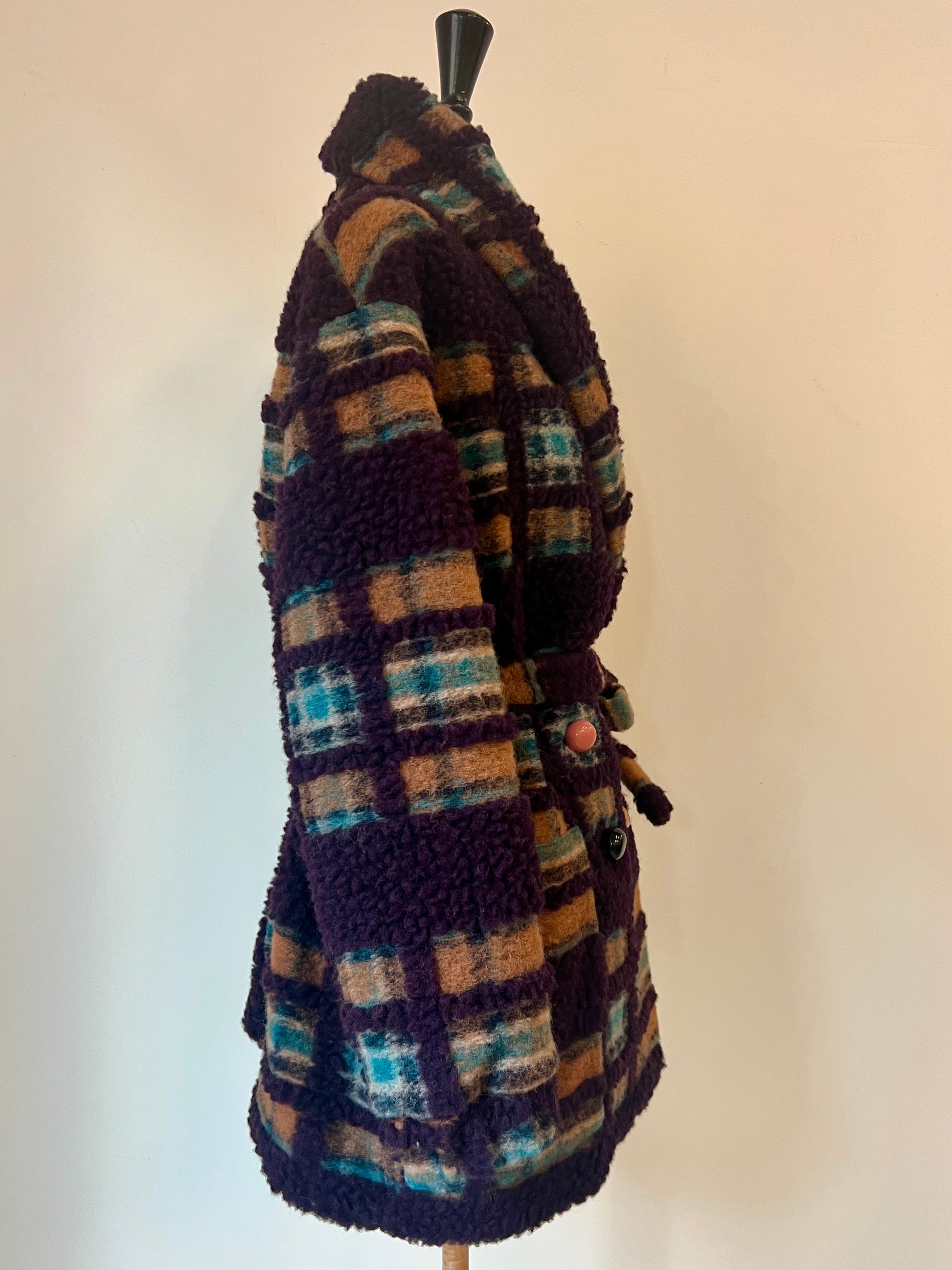 Premium wool-blend towel jacket featuring a teddy texture and a check pattern.