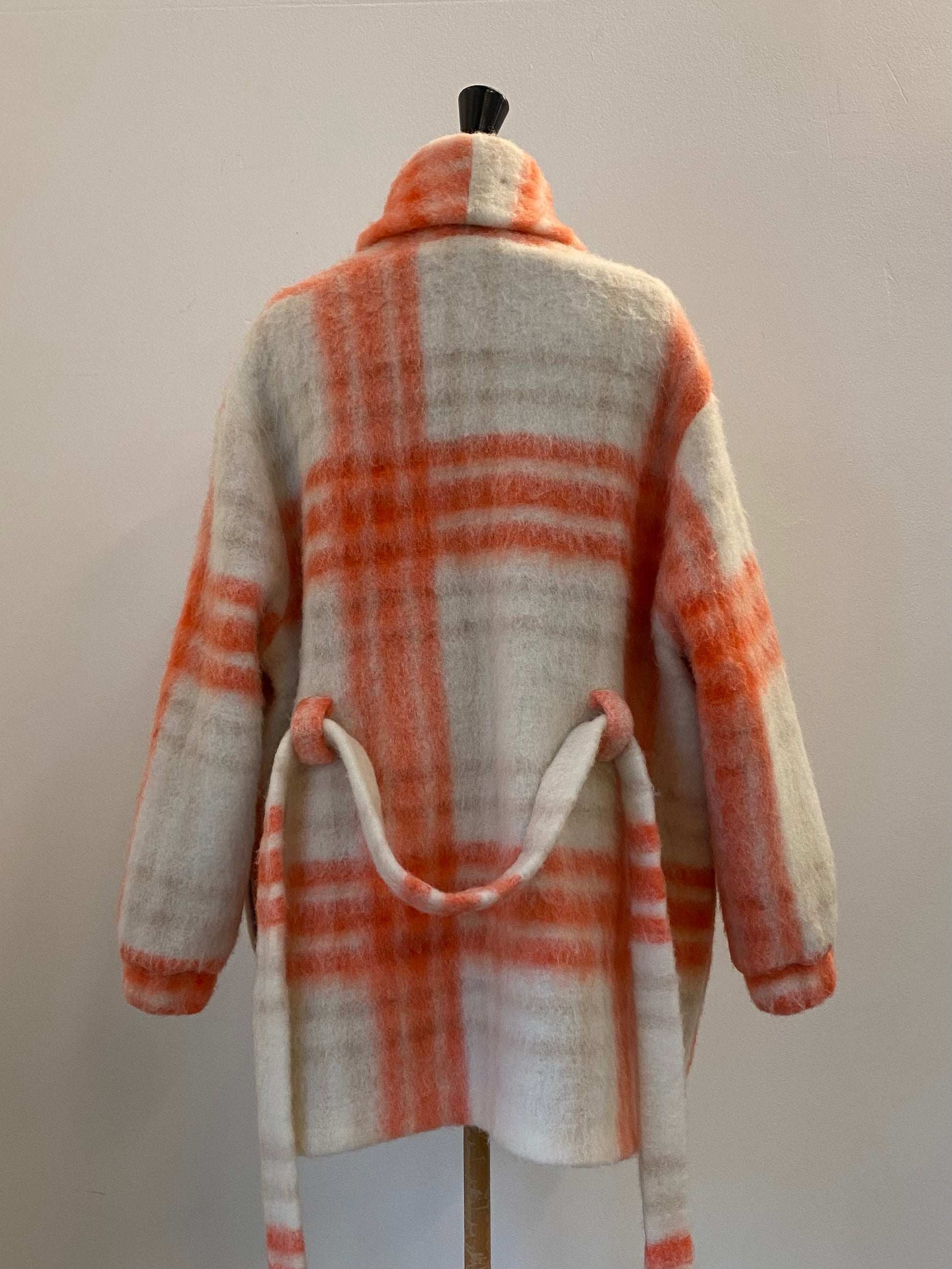 Premium wool-blend towel jacket featuring a mohair texture and a check pattern.